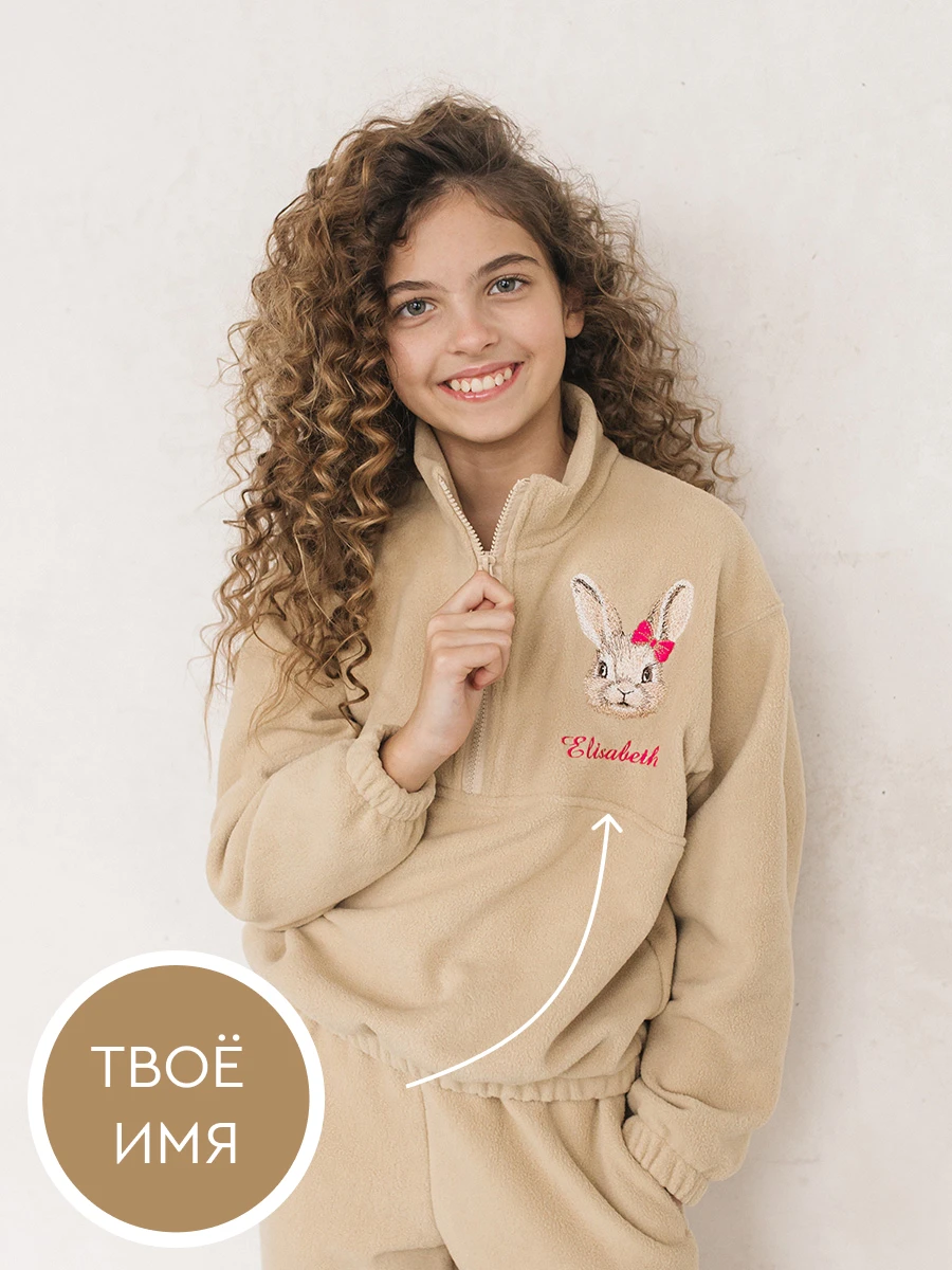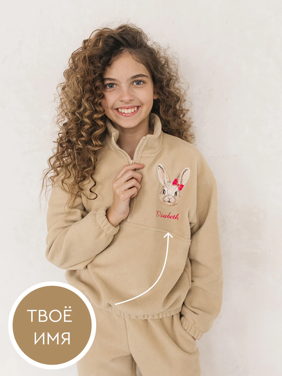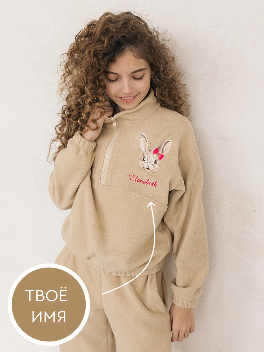 Представляем вашему вниманию стильный и практичный анорак для девочки артикул 6483 — идеальное решение для оптовых закупок детской одежды. Модель выполнена из мягкого, дышащего и износостойкого бежевого флиса, который отлично сохраняет тепло и не вызывает раздражения на нежной коже ребенка. Особенность этого анорака — возможность персонализации: каждое изделие может быть украшено вышивкой с именем ребенка и милым зайчиком, что делает его уникальным подарком или частью корпоративного заказа для детских садов, лагерей или школ.