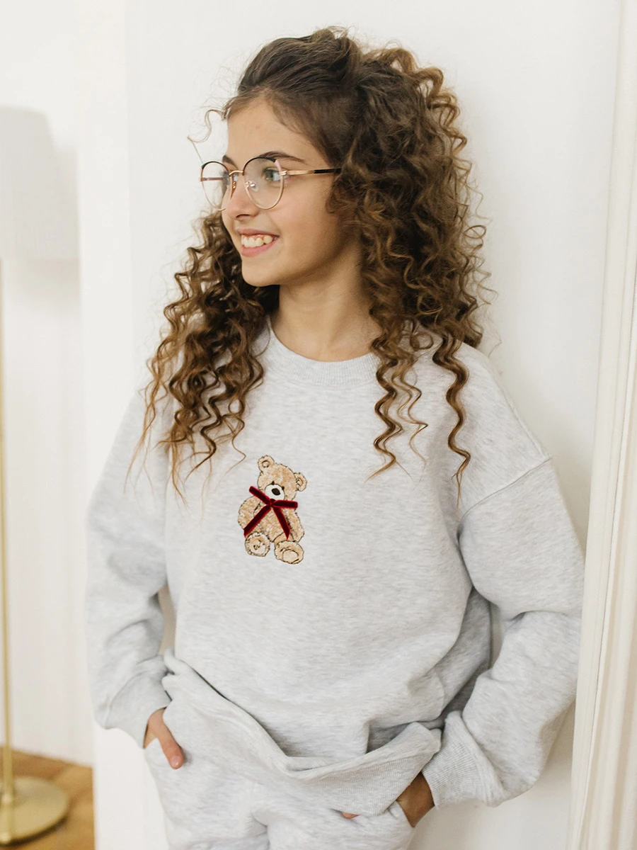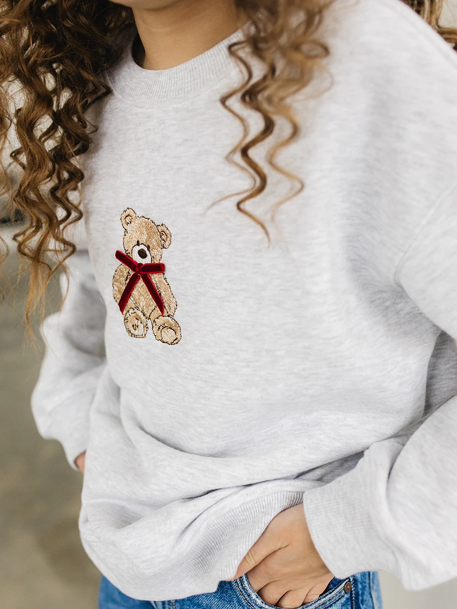 Фабрика «Божья Коровка» представляет новинку в коллекции детской одежды — стильный и уютный детский свитшот оптом (артикул 6492). Модель выполнена в универсальном сером цвете, который пользуется стабильным спросом у розничных покупателей. Главным украшением изделия является детальная вышивка в виде милого медвежонка, придающая модели индивидуальность и премиальный вид. Как производство полного цикла, мы тщательно контролируем каждый этап: от выбора гипоаллергенного полотна до финальной проверки швов.