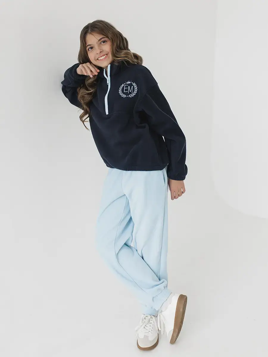 Голубые флисовые брюки для девочки от производителя «Божья Коровка». Практичная и тёплая модель для детского ассортимента оптовых поставок.