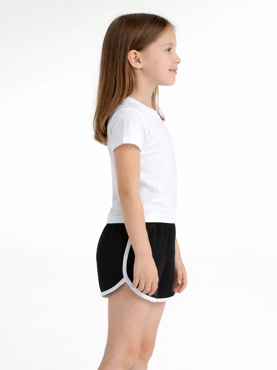 Комплект шорты и футболка s0014 для девочки — это универсальное решение для летнего ассортимента магазинов детской одежды. Модель включает черные шорты с лампасами и белую футболку, выполненные в современном минималистичном стиле. Такой комплект отлично подходит для повседневной носки, прогулок, детского сада и активного отдыха. Свободный крой обеспечивает комфорт и не сковывает движения ребенка.
