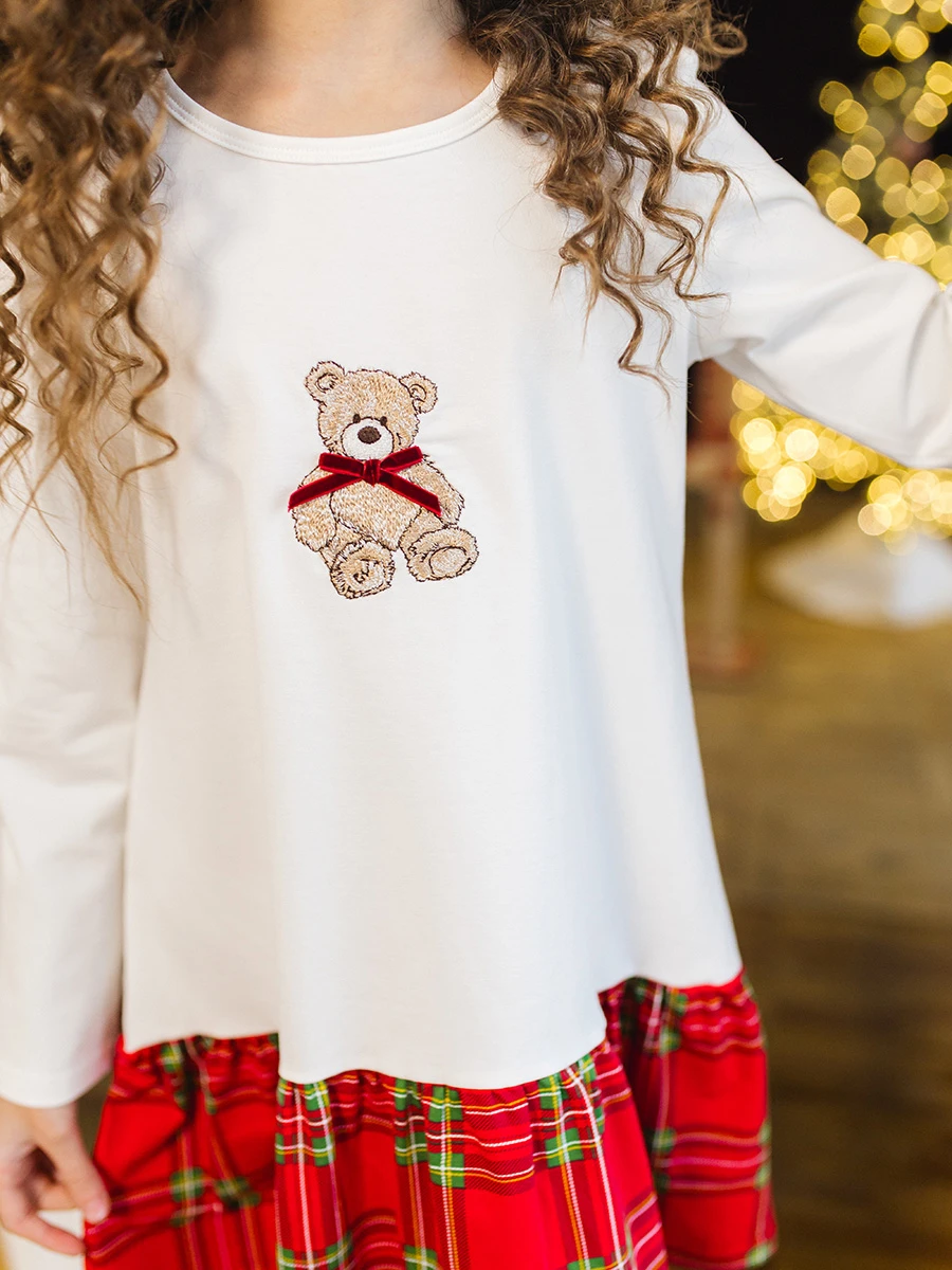 Новогоднее белое платье для девочки с очаровательной вышивкой медвежонка — это праздничная модель, созданная фабрикой «Божья Коровка» специально для зимних коллекций. Платье выполнено из мягких, приятных к телу материалов, которые сохраняют форму, не мнутся и выглядят нарядно даже после активных детских игр. Белый цвет подчеркивает праздничность образа, а вышивка делает модель по‑настоящему уникальной и запоминающейся.